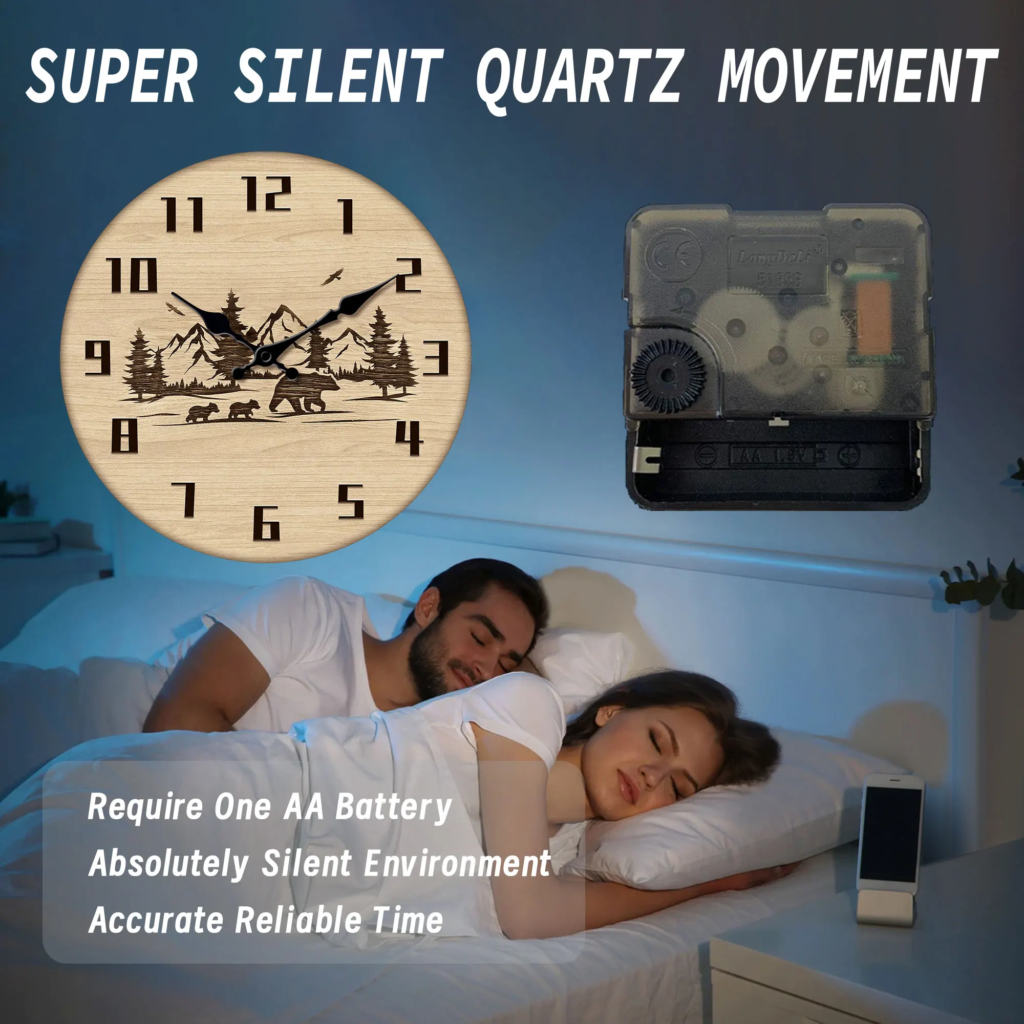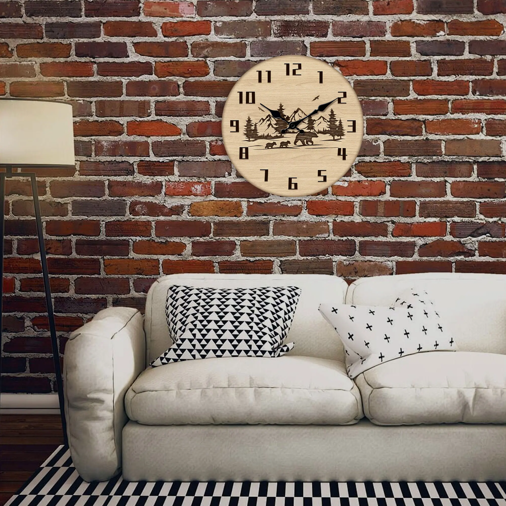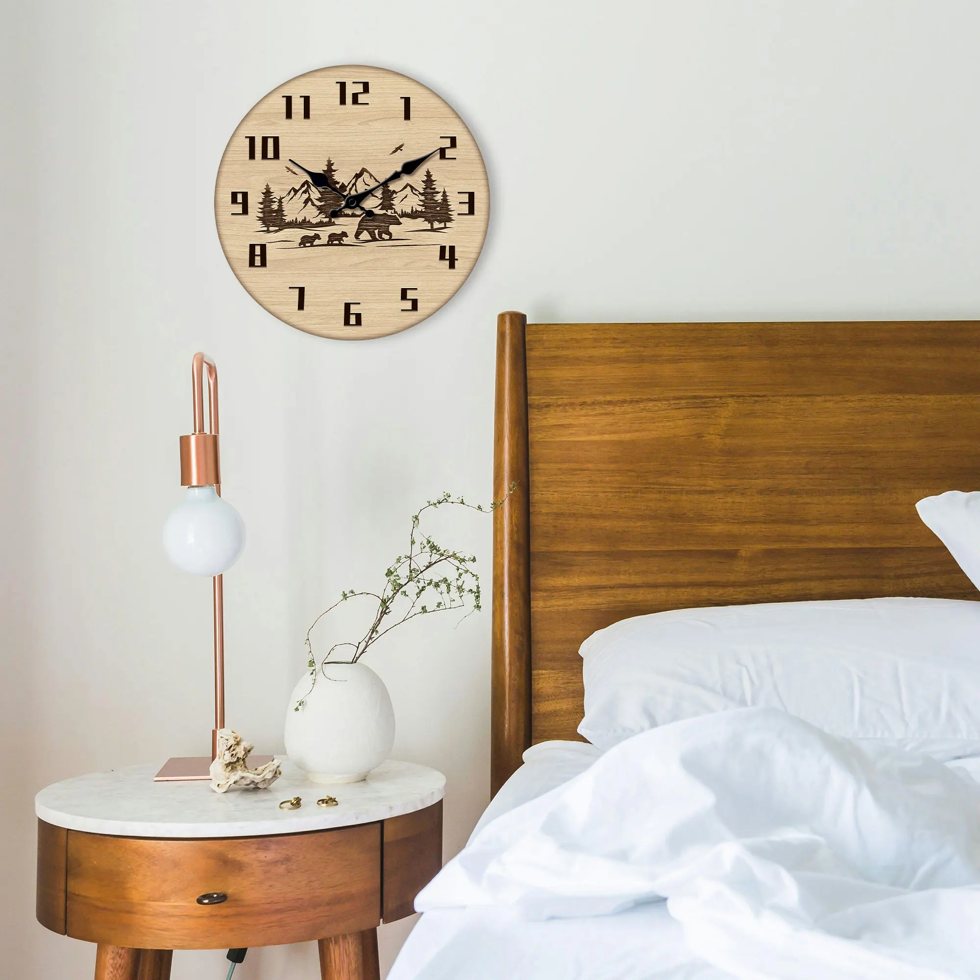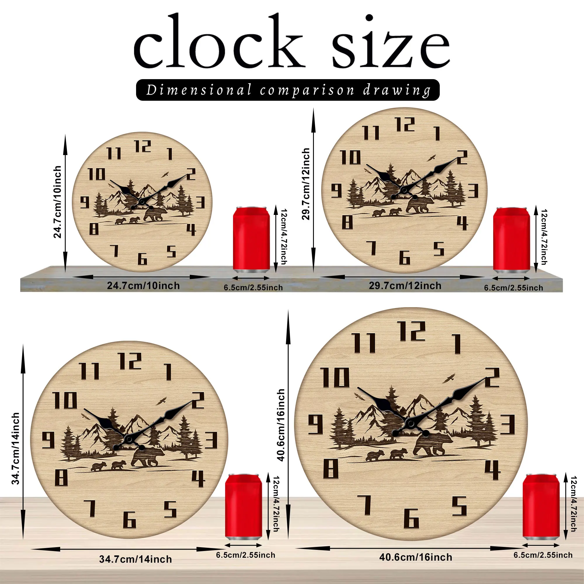 1Pc Round Wooden Bear Wall Clock, Forest Wildlife Cabin Wall Clock, Silent Clock, For Living Room Bedroom, Room Decor, Home Deco
