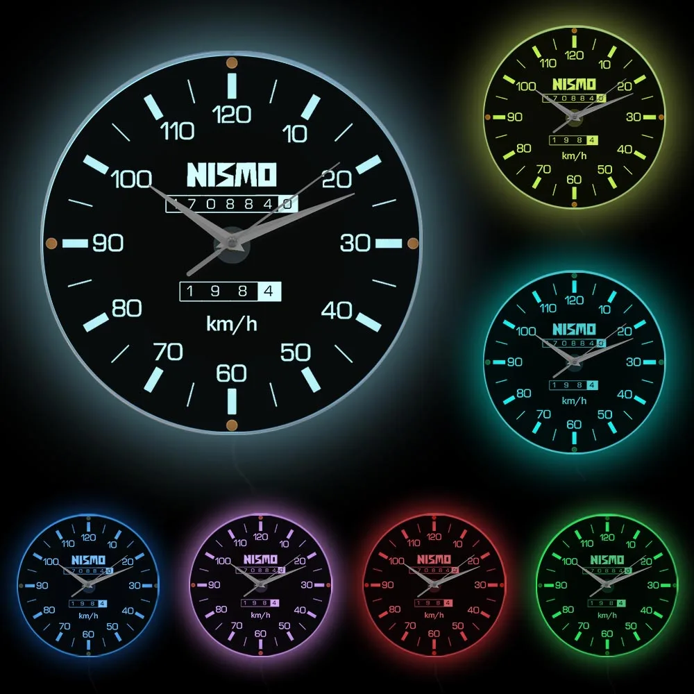 Motorsports Speedometer Modern Design LED Light Wall Clock For Man Cave Garage Decor Driving Racing Car Dashboard Pritned Clock