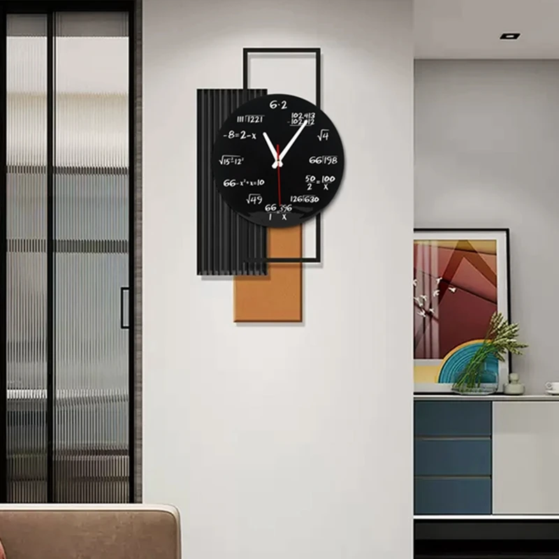 Instead of using Roman numerals or traditional numerals, this wall clock has a different equation on each delimitation.