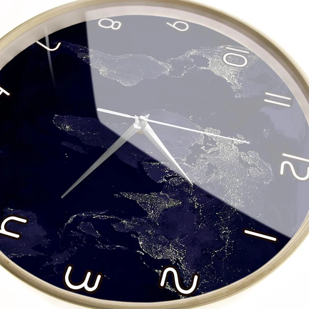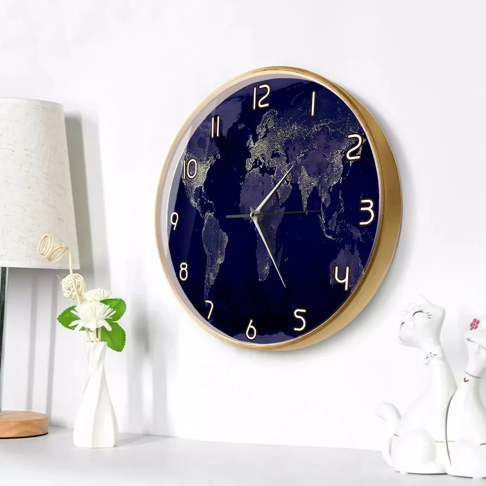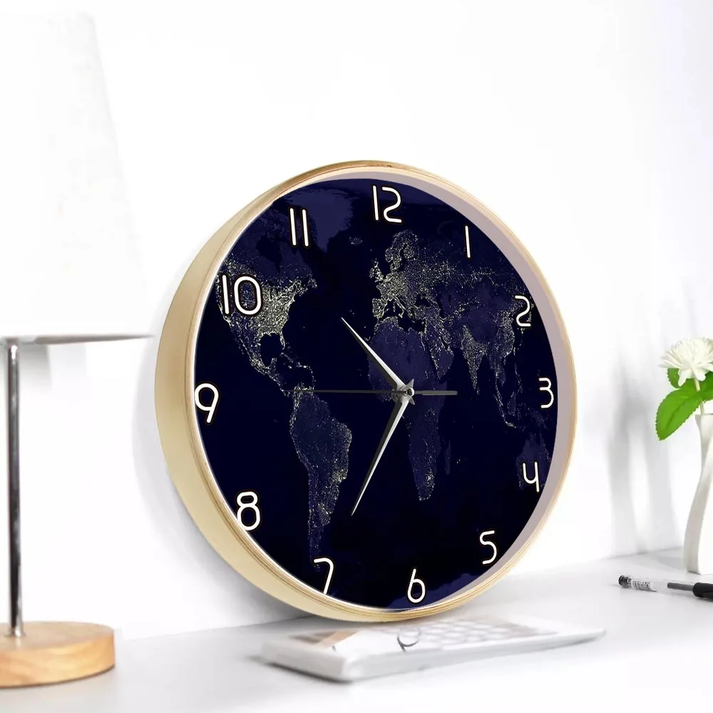 Large Glod World Map Metal Wall Clocks Wall Clock