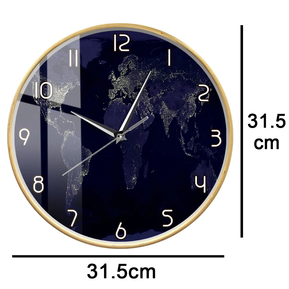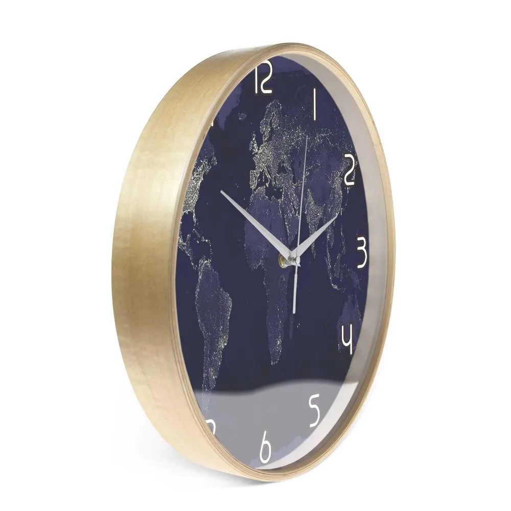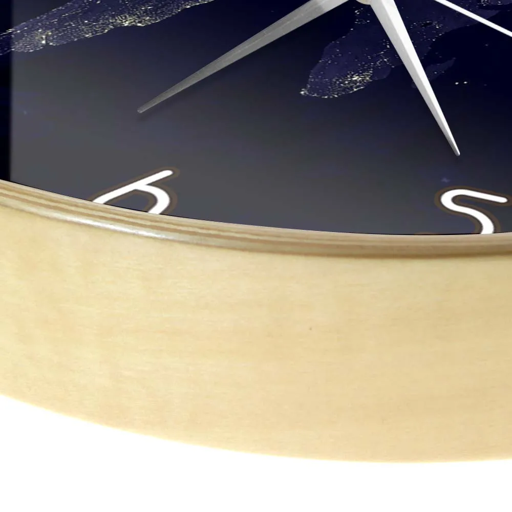 Night View World Map Wall Clock Color:Wooden Frame Clock