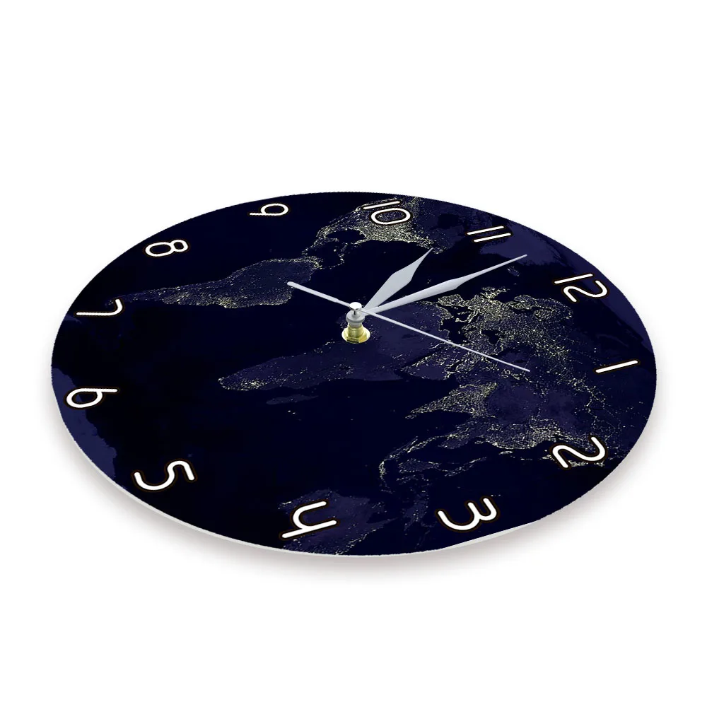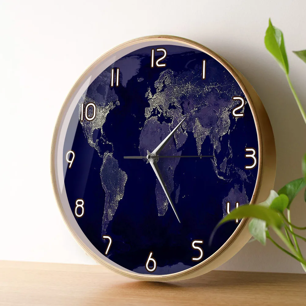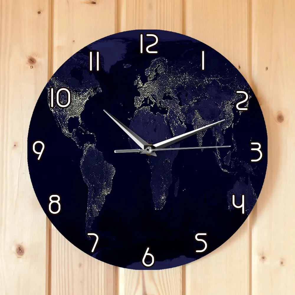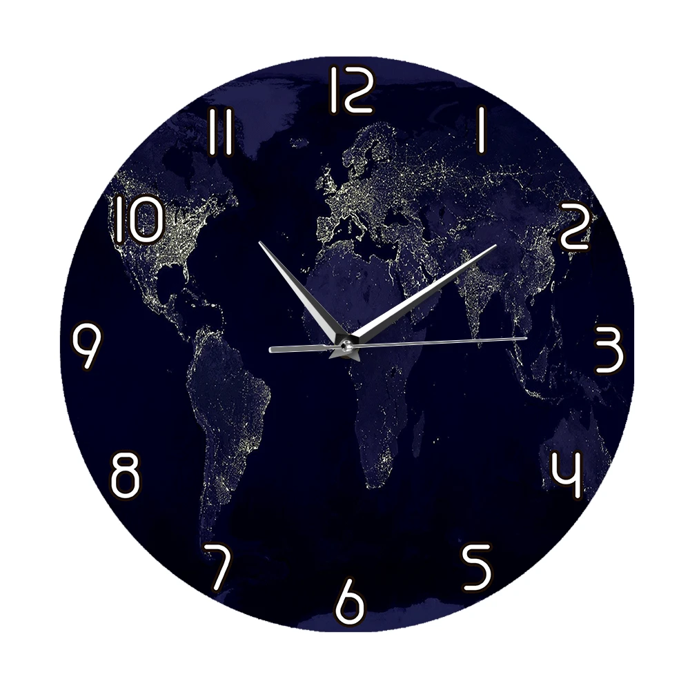 Night View World Map Wall Clock For Home Office Decor Abstract Travel Map Globe Earth Art Modern Design Timepieces Wall Watch