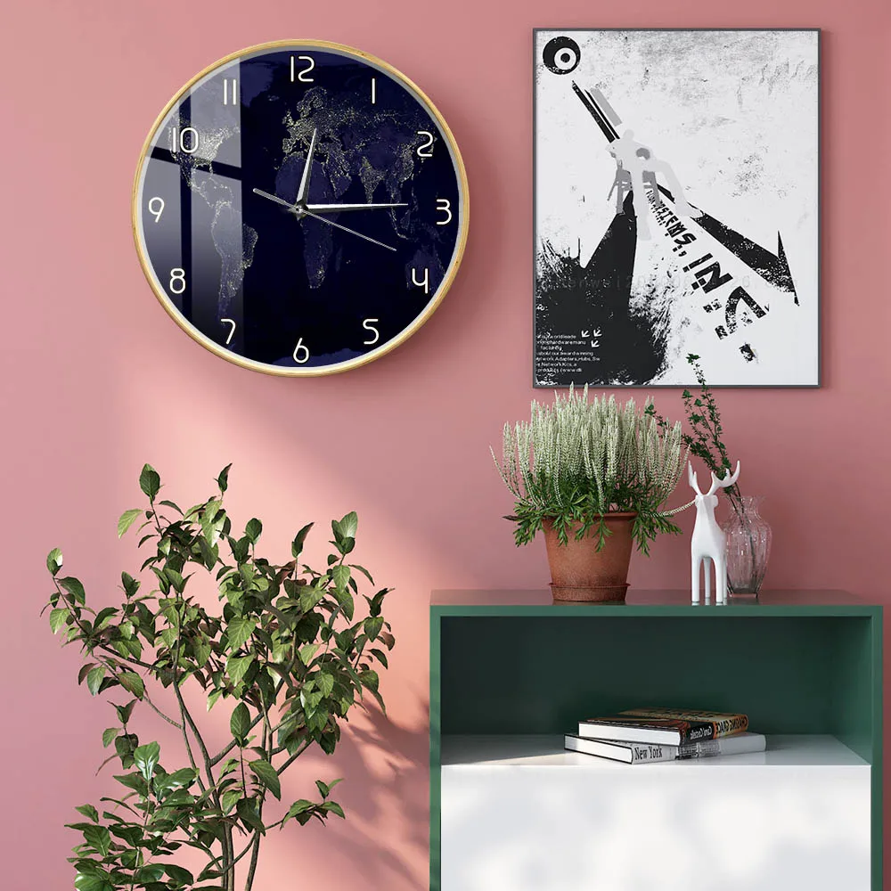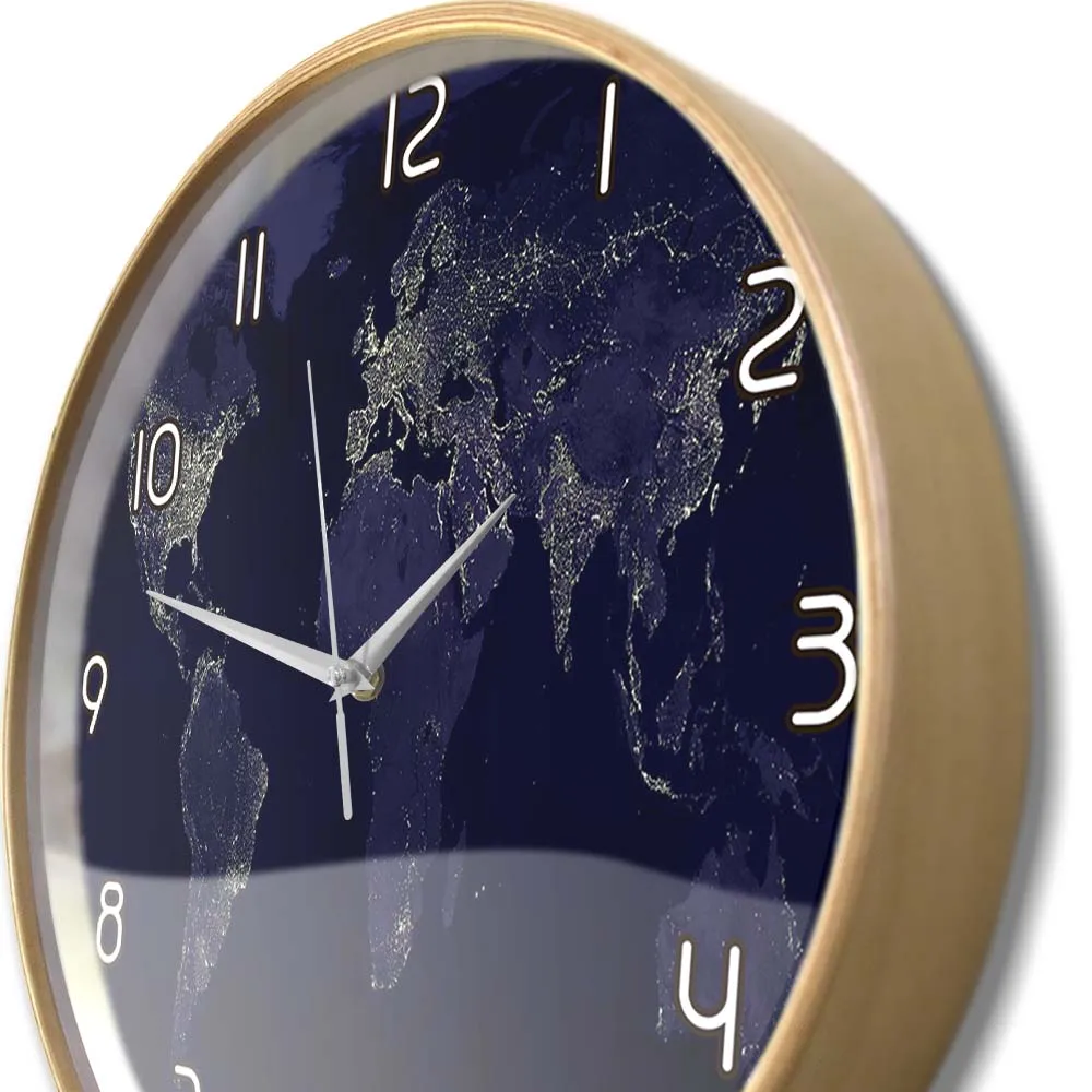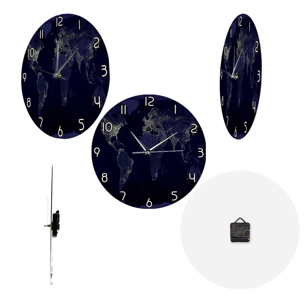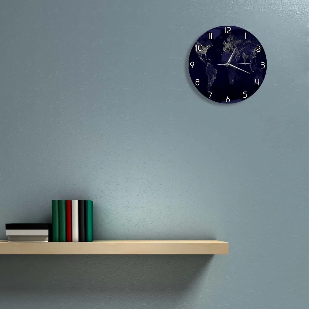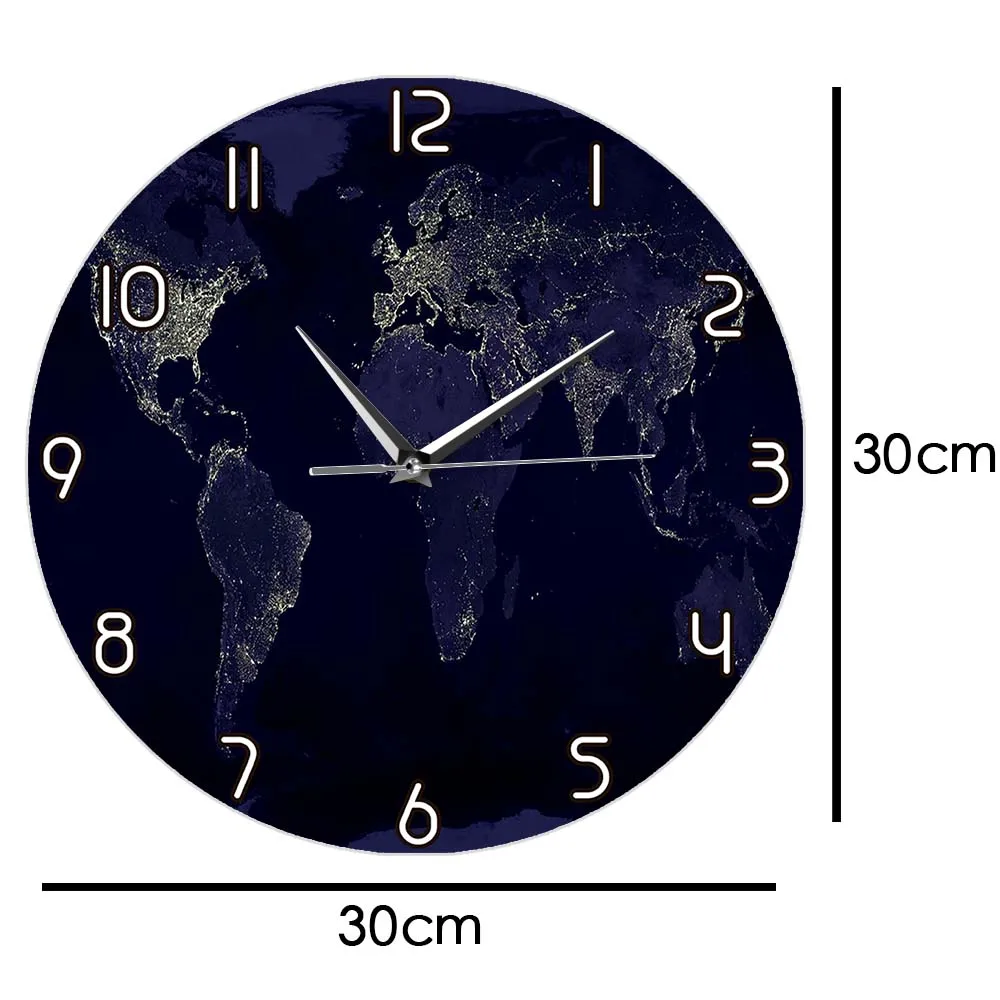 Night View World Map Wall Clock For Home Office Decor Abstract Travel Map Globe Earth Art Modern Design Timepieces Wall Watch