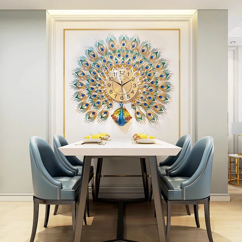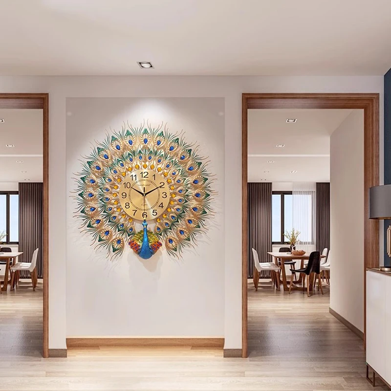 Round Premium Aesthetic Peacock Wall Clock Color:80x70cm