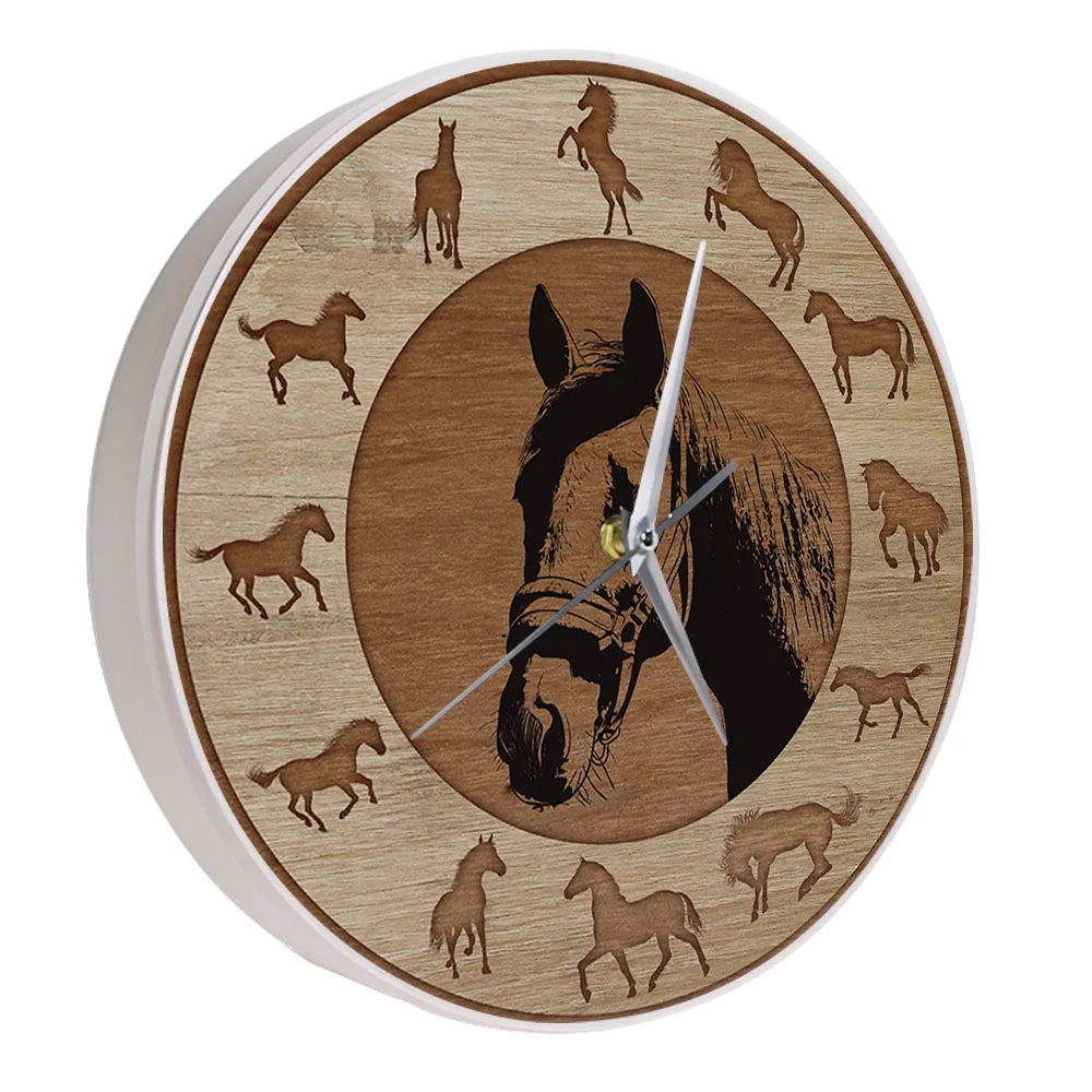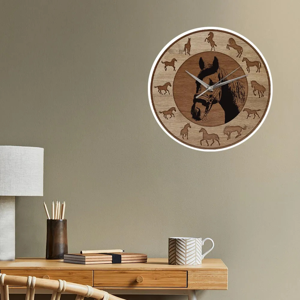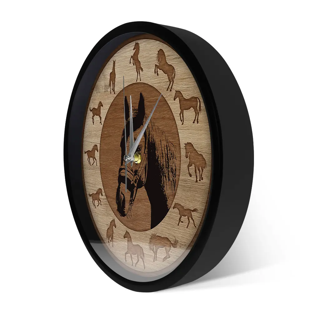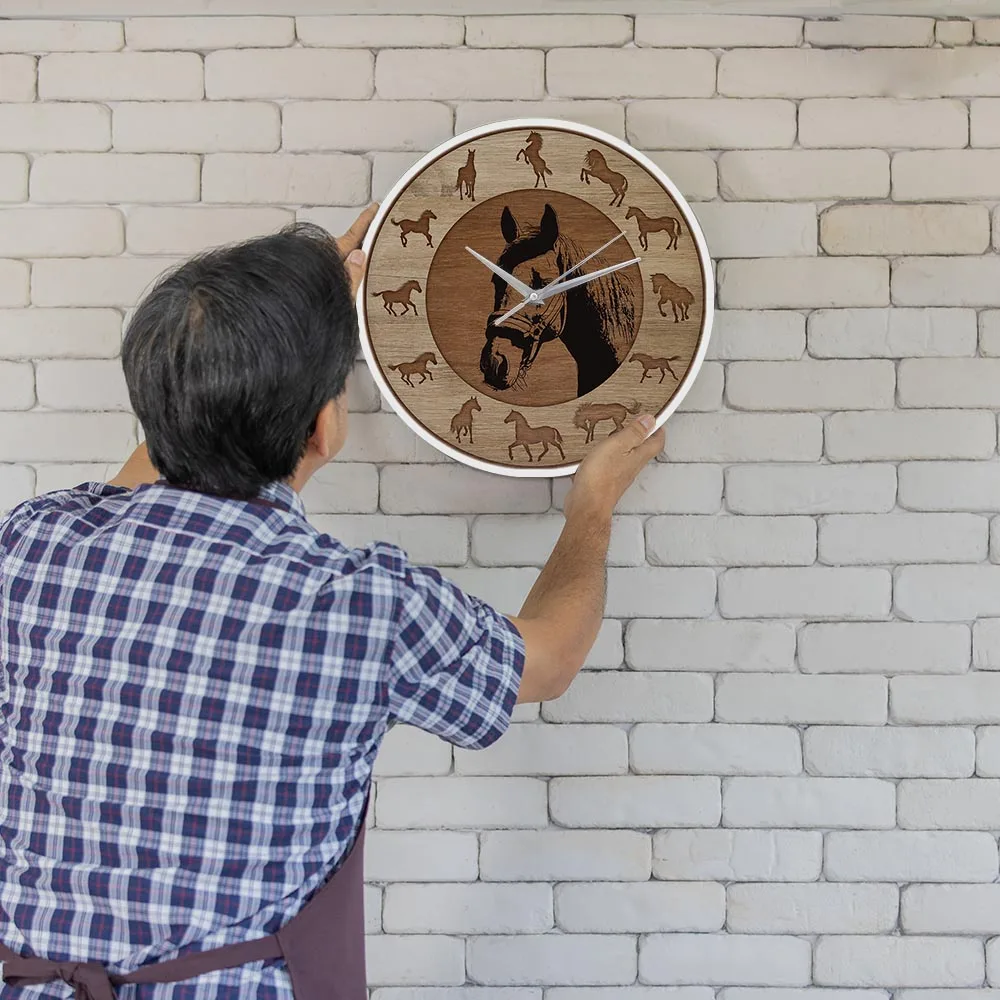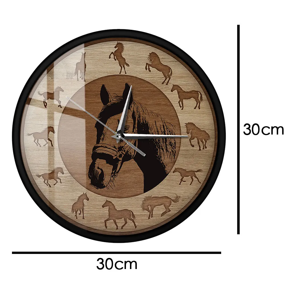 Farmhouse Style Horse Silhouettes Wall Clock Wood Grain Texture Printed Wall Clock Running Horses Art Home Decor Equestrian Gift