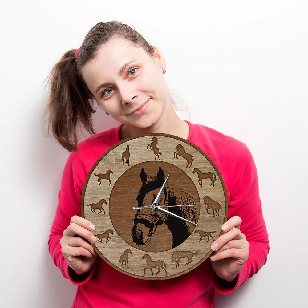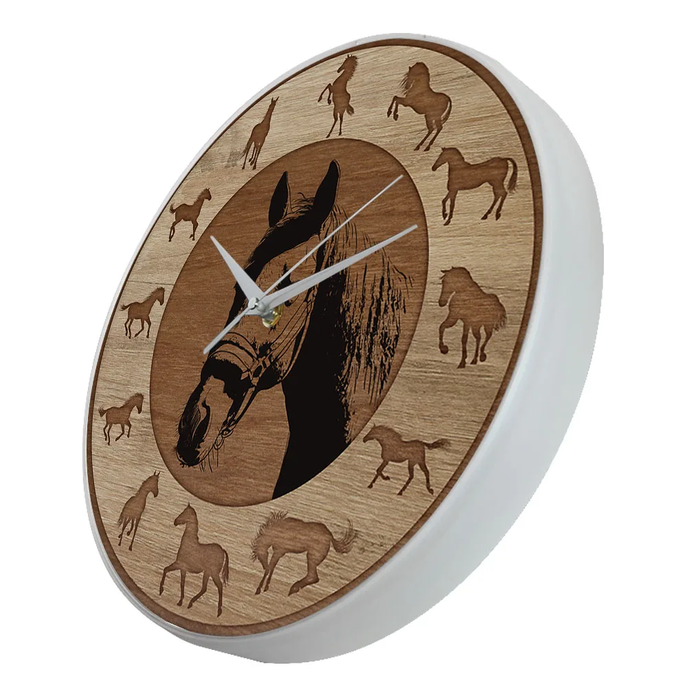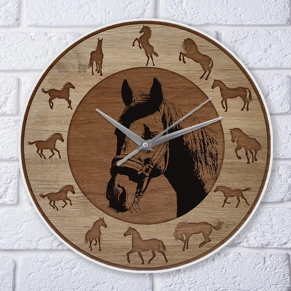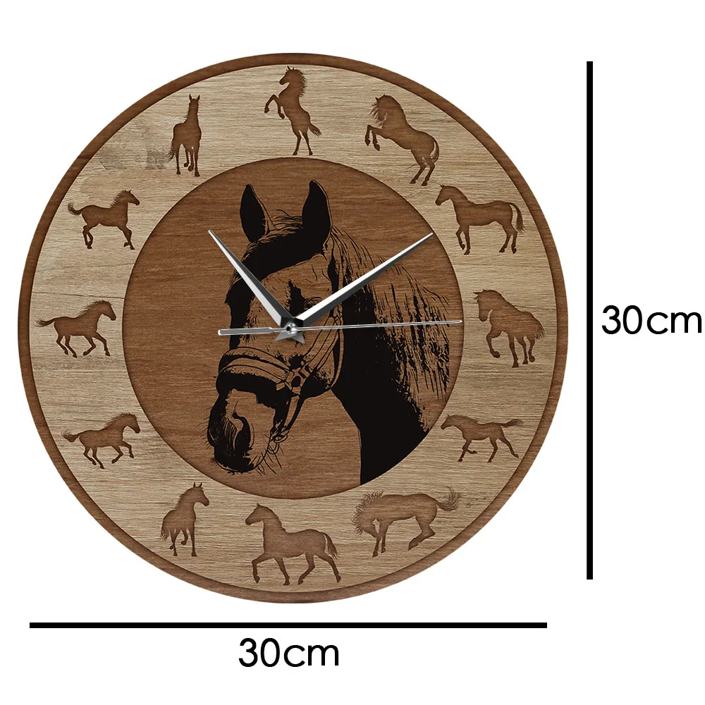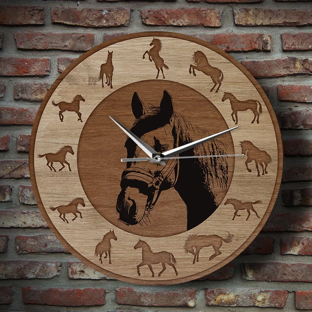 Farmhouse Style Horse Silhouettes Wall Clock Wood Grain Texture Printed Wall Clock Running Horses Art Home Decor Equestrian Gift