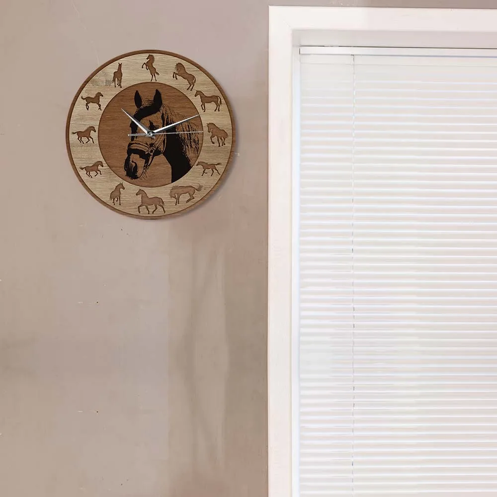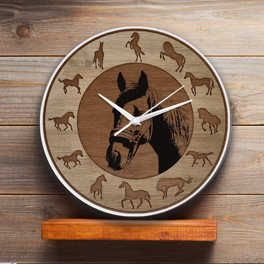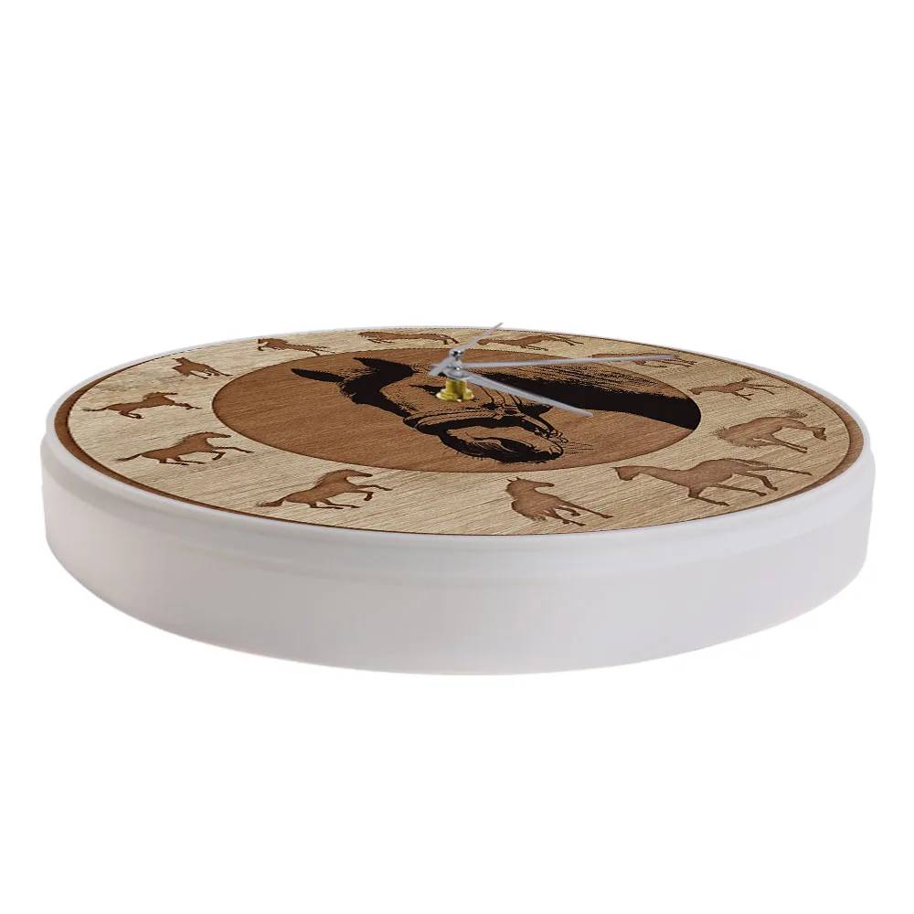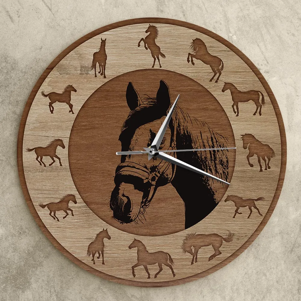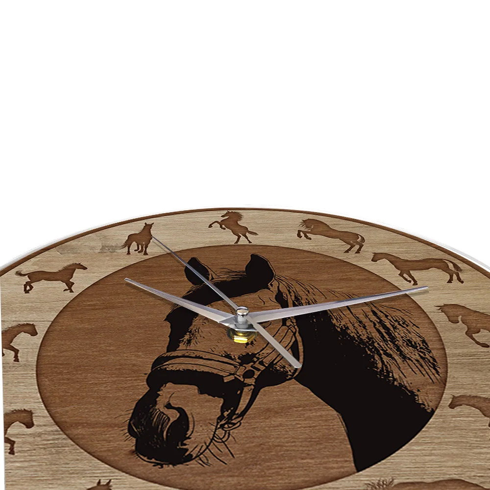 Farmhouse Style Horse Silhouettes Wall Clock Wood Grain Texture Printed Wall Clock Running Horses Art Home Decor Equestrian Gift