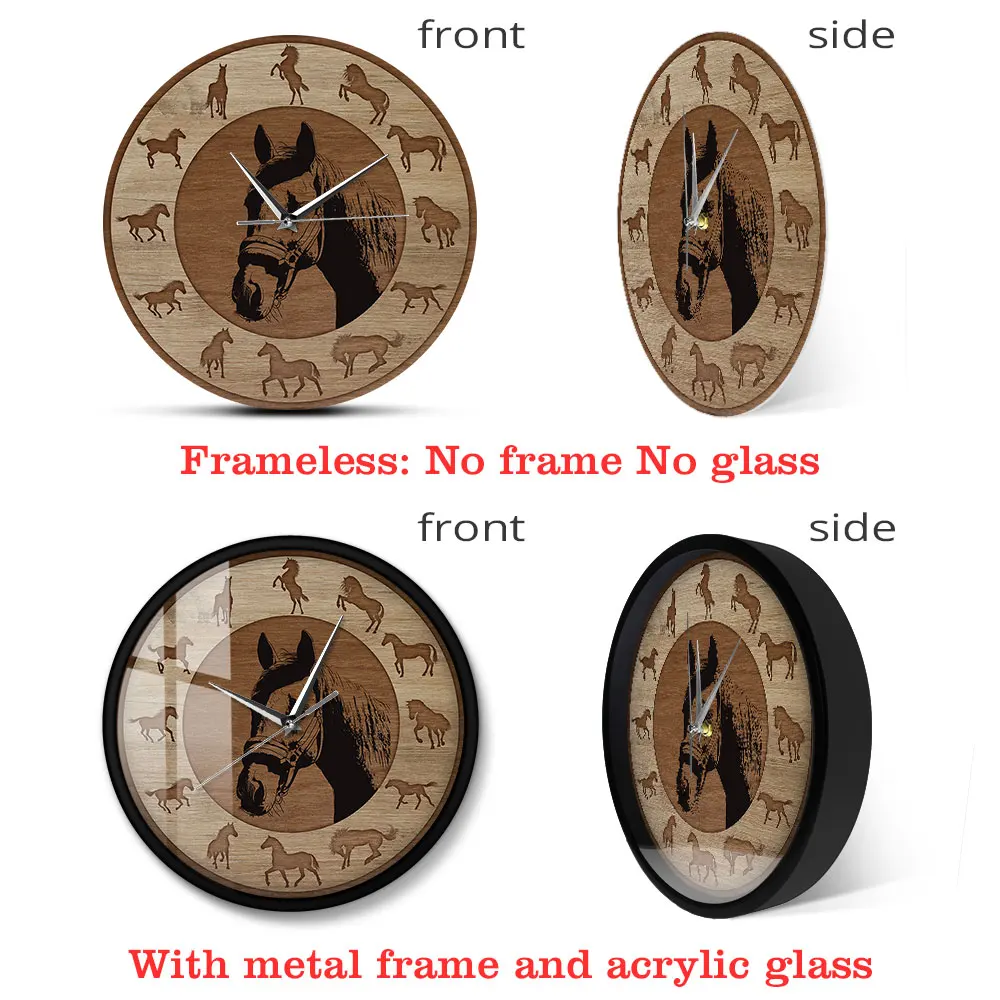 Running Horses Silhouettes Wall Clock Wood Grain Texture Printed Wall Clock Color:Metal Frame