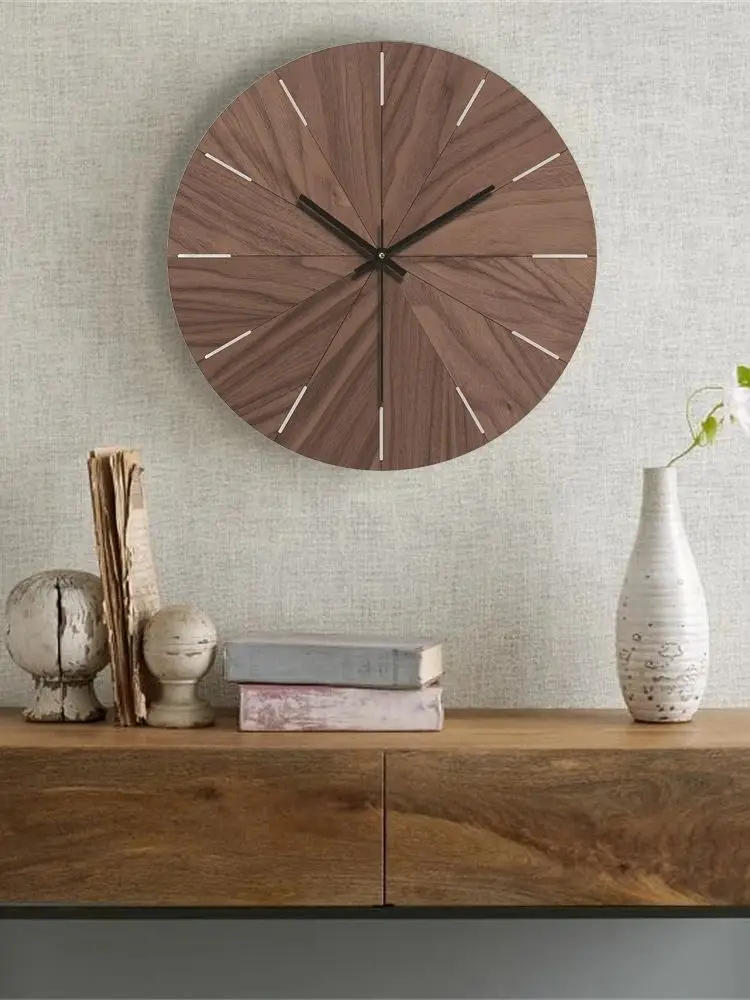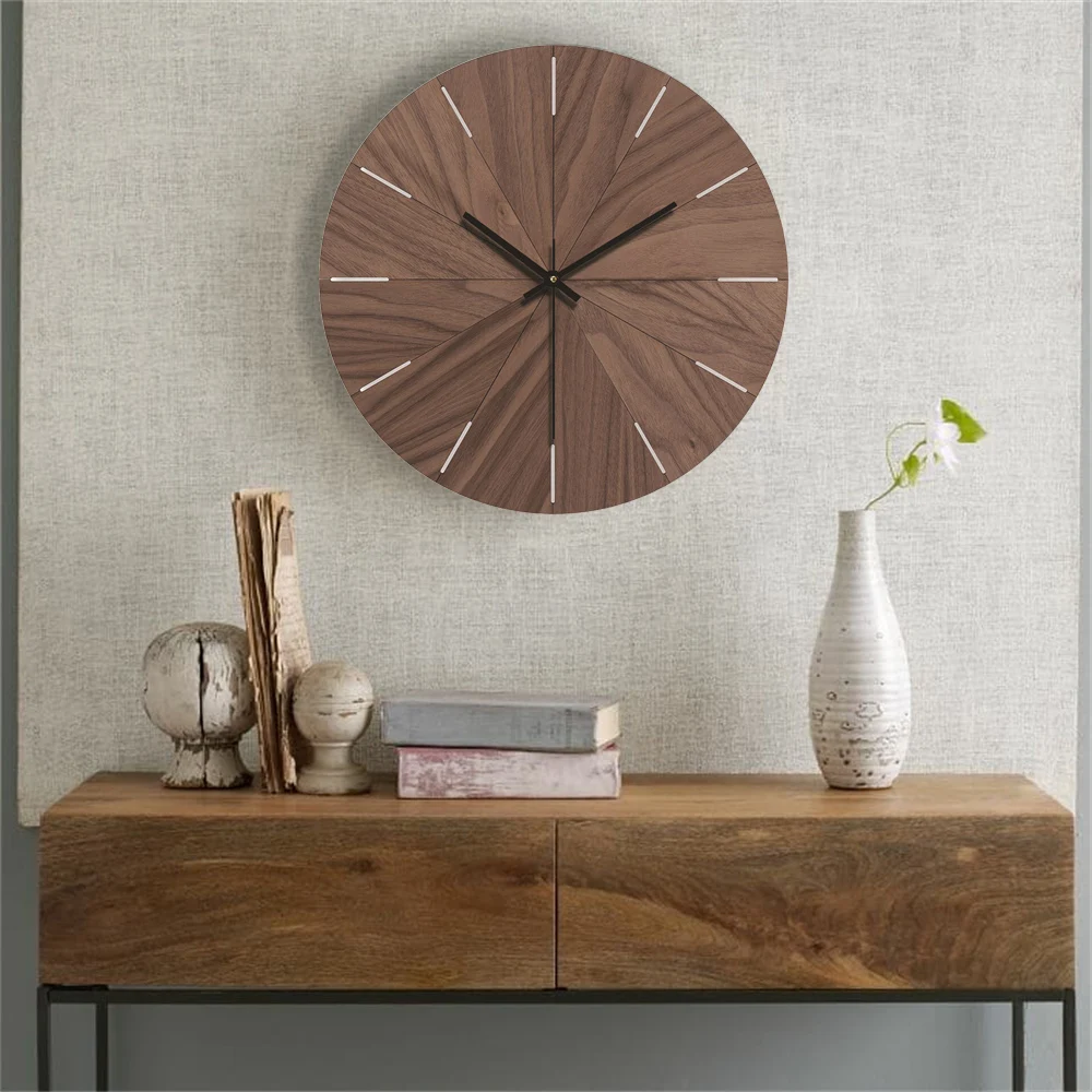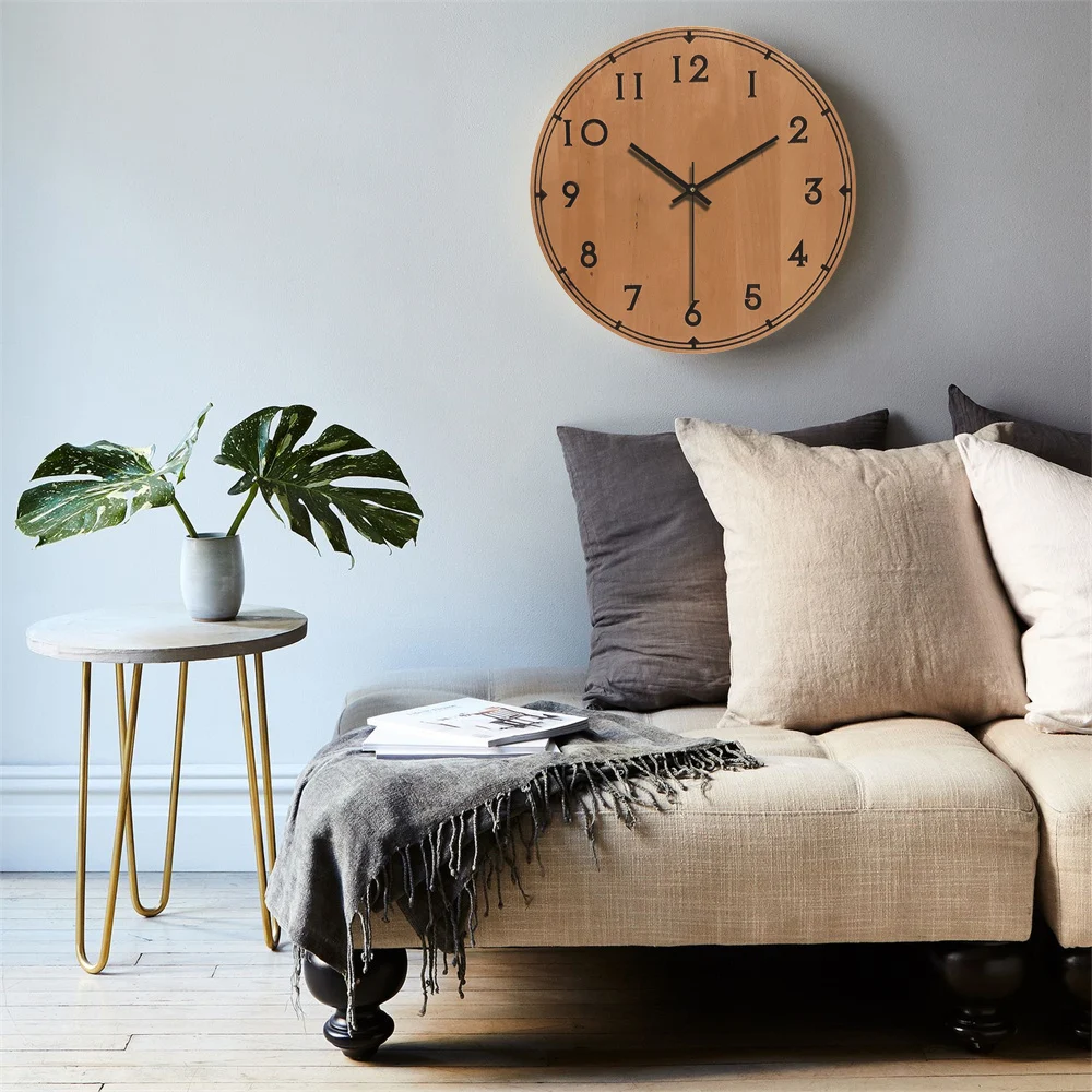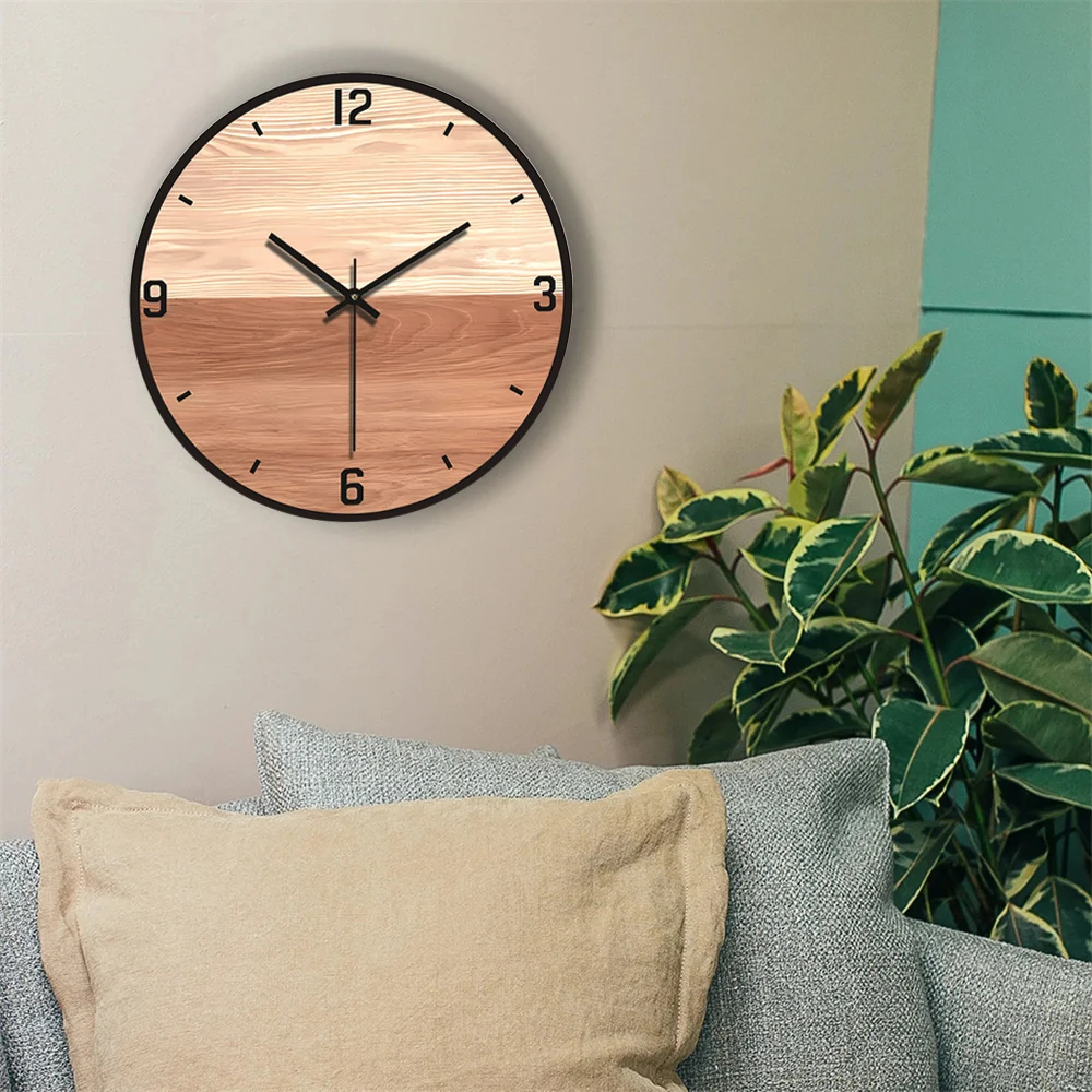Vintage Dial Wood Grain Living Room Clock Simple Silent Decoration Wall Clock Non Ticking Clocks For Indoor/Outdoor Living Room